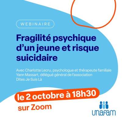 💻 L’UNAFAM met à disposition le replay de son webinaire « Fragilité psychique d’un jeune et risque suicidaire », qui s’est tenu le 2 octobre 2025.