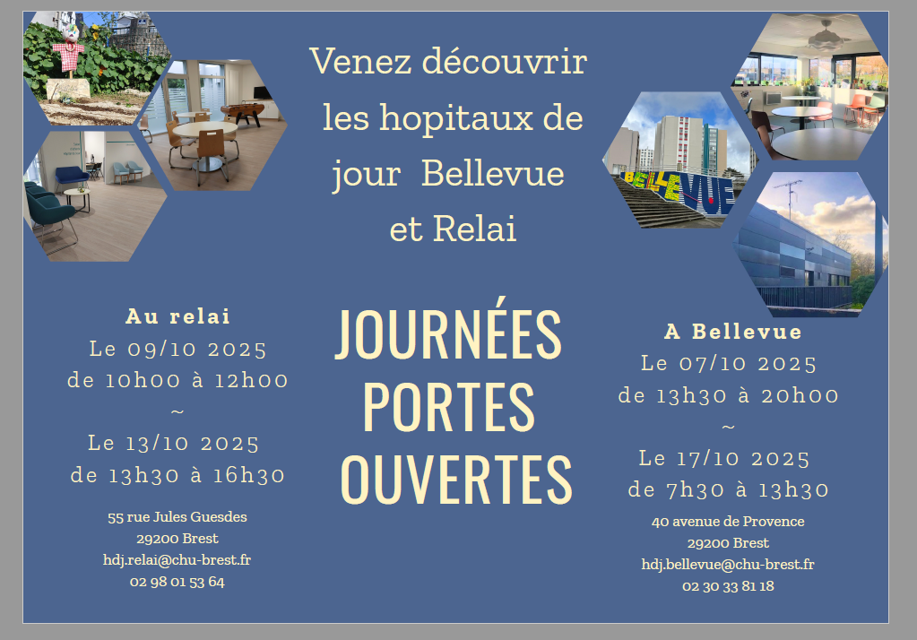 ‼️Des coquilles se sont glissées dans les dates/horaires et adresses des portes ouvertes des Hôpitaux de jour Bellevue et Relai. Retrouvez ci-dessous les informations correctes :