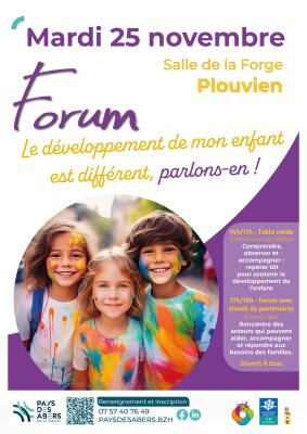 👶 Le Pôle Ressource Handicap PRH29, la CAF, EPAL Association et les communes partenaires du territoire organisent un forum intitulé « Le développement de mon enfant est différent, parlons-en ! », dédié au développement des plus jeunes et au dépistage précoce.
