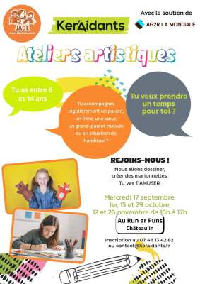 ✨ Ker’Aidants s'associe avec JADE (Jeunes AiDants Ensemble) et AG2R la Mondiale pour organiser des ateliers artistiques à destination des jeunes aidants âgés de 6 à 14 ans.