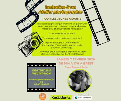 ✨ Ker’Aidants, en partenariat avec JADE (Jeunes AiDants Ensemble) et AG2R la Mondiale, organise un atelier photographie à destination des jeunes aidants âgés de 18 à 25 ans.