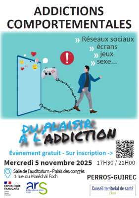 📢 Le Conseil Territorial de Santé d’Armor organise un évènement sur la thématique des addictions comportementales : « Réseaux sociaux, écrans, jeux, sexe... du plaisir à l'addiction ».