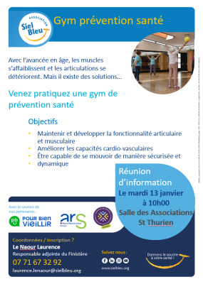 🤸♀️ Vous résidez à Saint-Thurien et avez + de 60 ans ? L’association Siel Bleu vous propose une série d’ateliers sur le thème de l’Activité Physique Adaptée, encadrée par un professionnel.