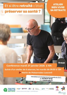 📌 Pour tout renseignement et pour vous inscrire à la conférence, merci de prendre contact avec le CLIC du Pays bigouden.